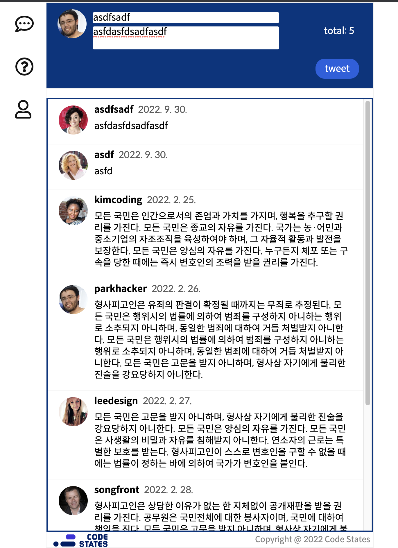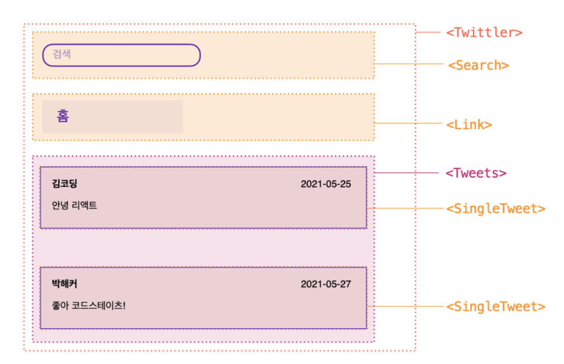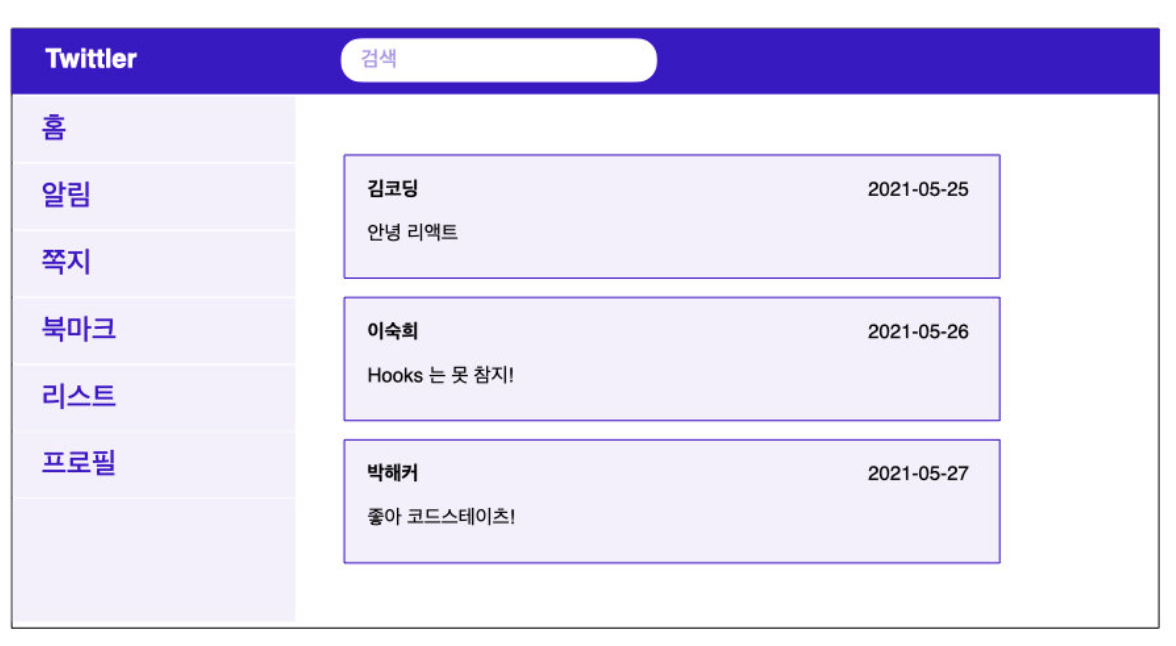 전체 트윗 목록은 Tweets에서 필요로 하는 데이터이고, SingleTweet 컴포넌트들은 모두 전체 트윗 목록에 의존한다. 따라서 전체 트윗 목록 상태는 Tweets에 위치해둔다.