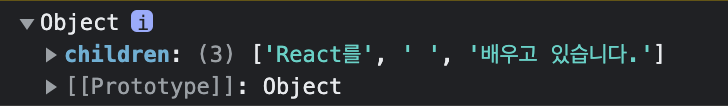 · 객체 형태이다. props로 어떤 타입의 값도 넣어 전달할 수 있도록 props는 객체의 형태를 가진다.