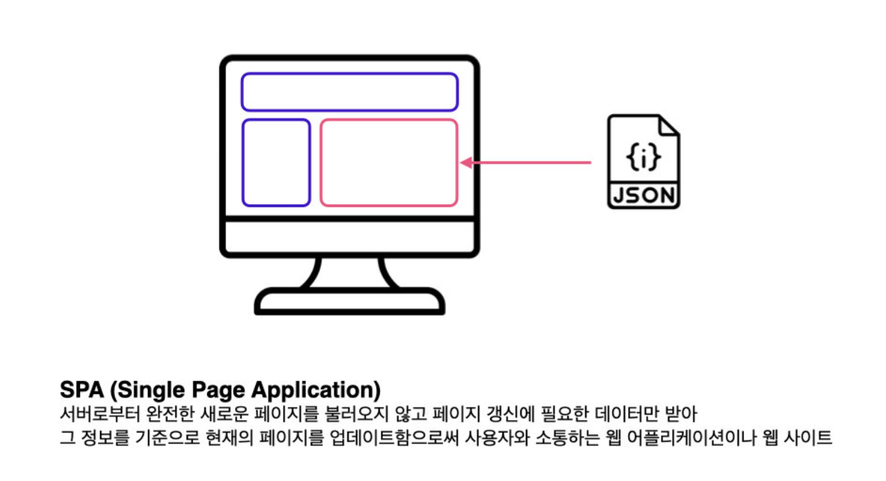 SPA는 서버로부터 완전히 새로운 페이지를 불러오는 것이 아니라, 화면을 업데이트하기 위해 필요한 데이터만 서버에서 전달받아 브라우저에서 해당하는 부분만 업데이트하는 방식으로 작동하는 웹 애플리케이션이나 웹 사이트를 말한다.