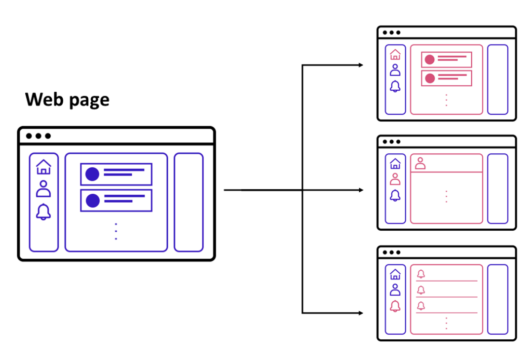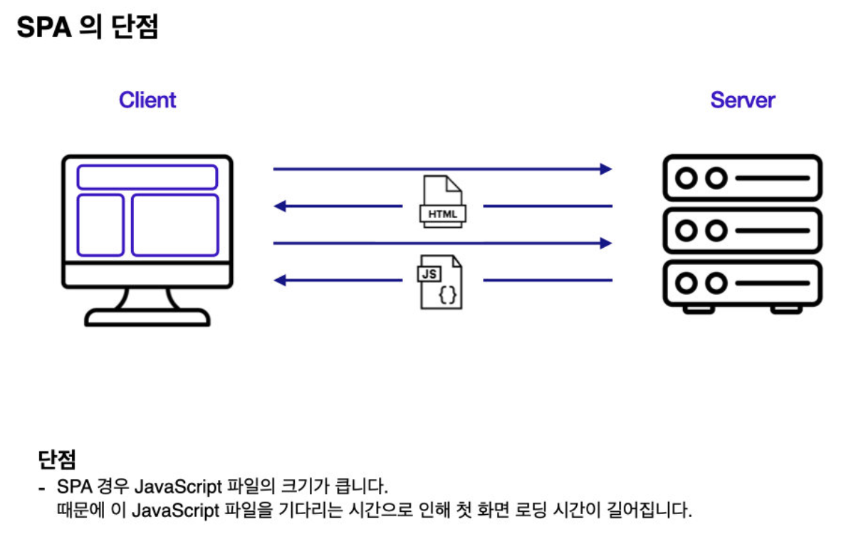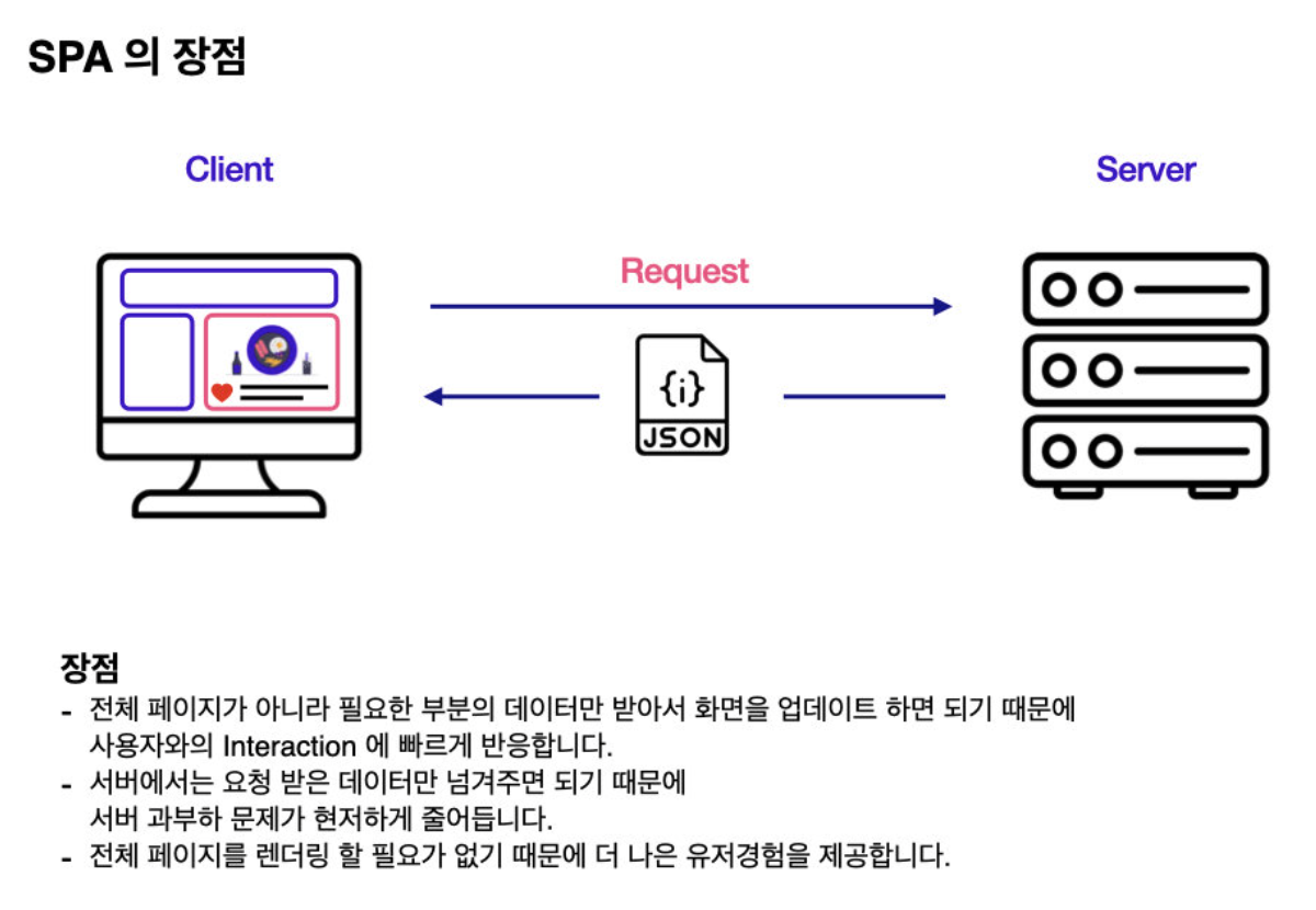 전통적인 웹사이트에서는 사용자가 웹사이트 내의 다른 페이지로 이동하면, 브라우저가 페이지를 보여주기 위해 매번 HTML 파일로 된 "페이지 전체"를 불러와야만 했다.