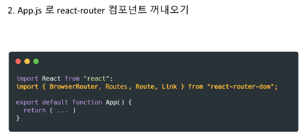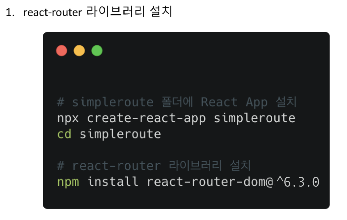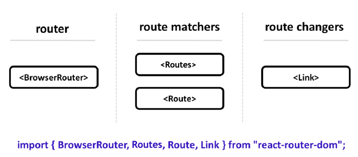 이 컴포넌트들을 사용하기 위해서는 React Router 라이브러리에서 따로 불러와야 한다. 다음 명령어를 통해 사용할 수 있다.